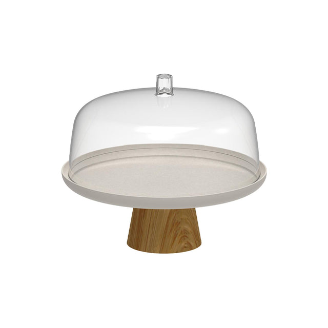 El porta tortas con pedestal Lume es perfecto para servir pasteles, dulces y bocadillos con encanto y sofisticación. Su diseño minimalista invita a disfrutar de cada momento en la mesa rodeado de comodidad, combinando una base de bambú con una cúpula de plástico altamente transparente.