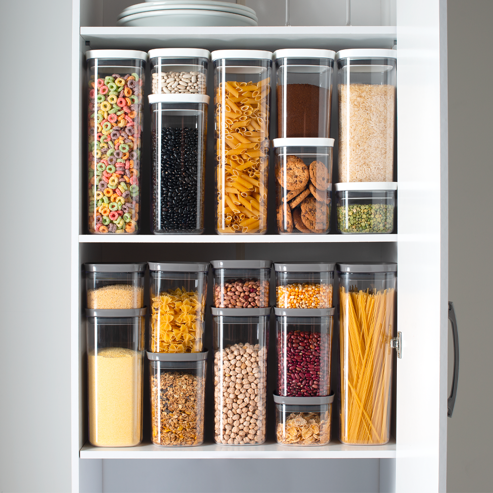 El conjunto de contenedores herméticos Block de 5 piezas es perfecto para ayudar en la organización de tu hogar, ya que almacena diferentes tipos de alimentos secos.