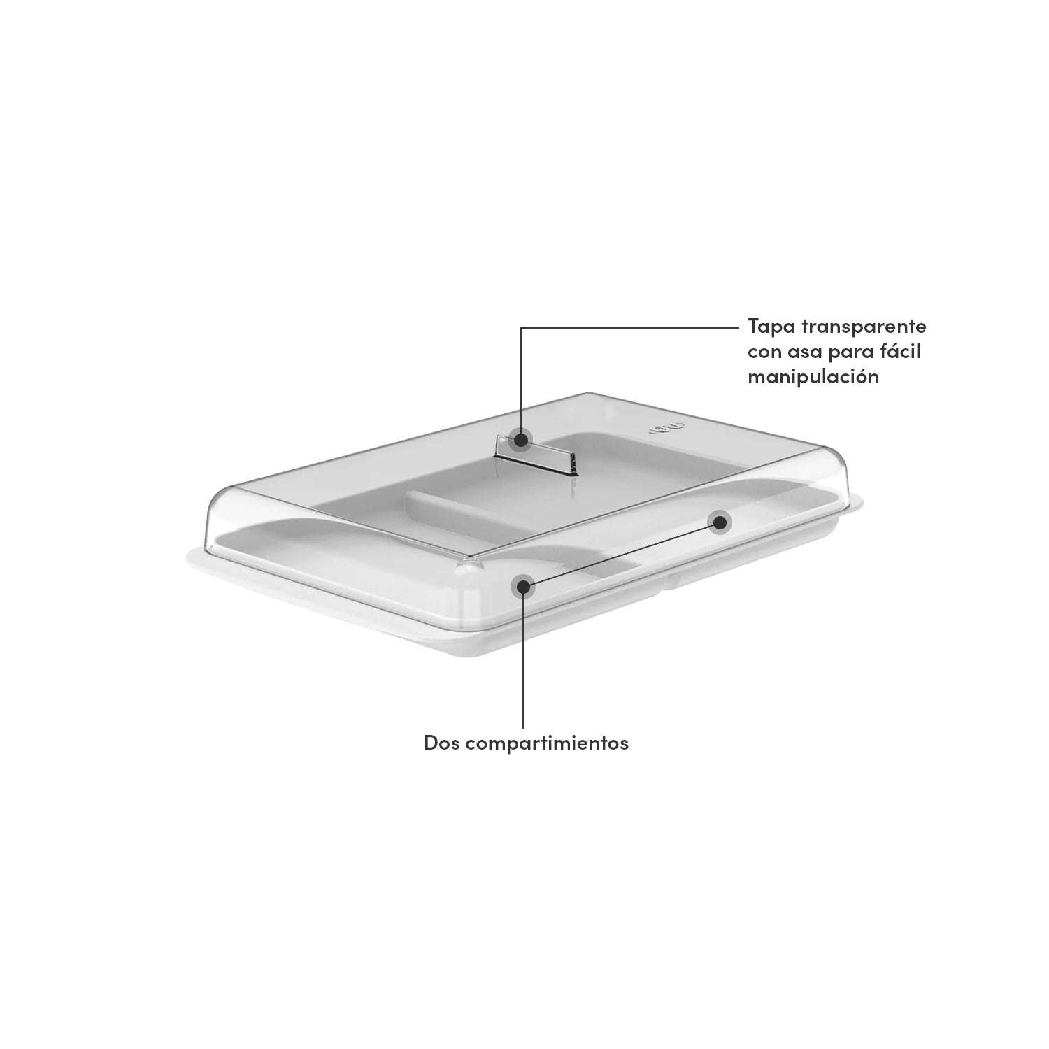 El contenedor de doble capa es el artículo perfecto para quienes buscan belleza para servir y almacenar alimentos fríos de forma sencilla y práctica. Con un diseño minimalista, combina con todo tipo de cocina, aportando armonía entre color y transparencia para facilitar la visualización de los elementos sobre la mesa. Otro diferencial de la línea son sus superficies, que internamente tienen un acabado pulido, facilitando la limpieza. El acabado exterior es texturizado, lo que reduce la visibilidad de las arañas. El material de la línea cuenta con una base en material rígido y texturizado (polipropileno) y las tapas y cúpulas en material transparente (poliestireno). Del refrigerador directo a la mesa, la puerta fría aportará practicidad, color y belleza a tu día a día. Cuidado del producto: Este producto es libre de BPA, no se utiliza en el congelador ni en el microondas. Se recomienda no lavar en lavavajillas y se sugiere limpiar con un jabón suave y una esponja, evitando materiales abrasivos en el proceso de limpieza.