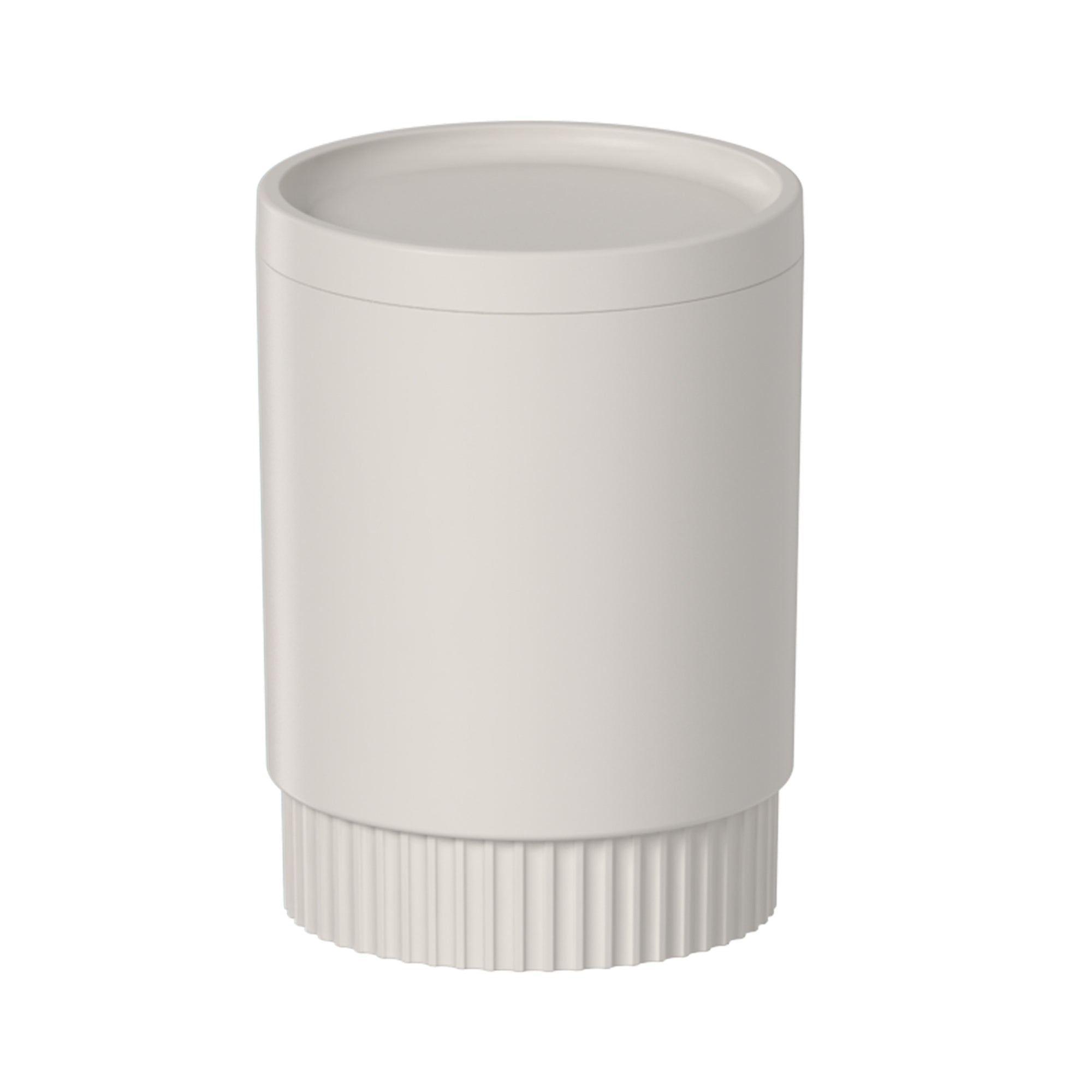 Transforma tu baño en un espacio armonioso y funcional con el Porta Algodón / Porta Cepillo Dorica Beige, un accesorio que combina diseño elegante y versatilidad para el almacenamiento diario.